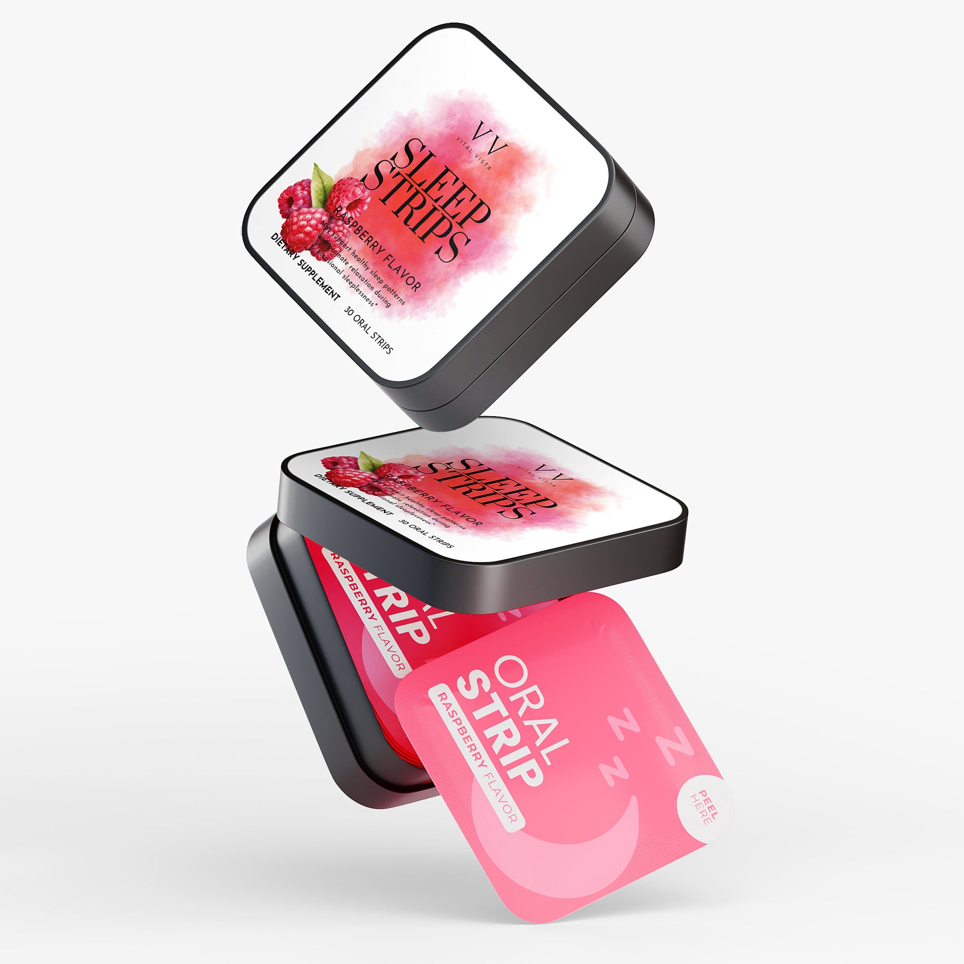 Ingredients: Pullulan, Valerian root extract, Lavender extract, Chamomile extract, Hibiscus extract, Cellulose, Raspberry Flavor, Malic acid, Xylitol, Lecithin, Erythritol, Sorbitol Syrup, Medium Chain Triglycerides, Steviol Glycosides, Melatonin